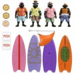 The radical reptiles were taking their sewer surfing to the beach this past summer! Create your own bodacious beach bash with this 2025 NECA Comic Con Exclusive action figure 4-pack. Compiling many of the beach and surfing episodes from the original 1987 Teenage Mutant Ninja Turtles cartoon series, the whole crew is here with all new sculpts! This 7-inch scale figure set includes Leonardo, Donatello, Raphael, and Michelangelo along with multiple surfboards and a wave base. Comes in special packaging with original artwork by Ken Mitchroney.