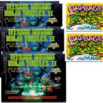 Here at Kevin Eastman Studios we are tossing in a couple of radical additions, including three (3) Factory Sealed 1991 Diamond Publishing sticker sets shellebrating the TMNT Movie II – Secret of the Ooze AND a pair of 1990 Mirage Studios COWABUNGA! stickers featuring the dudes on a surfboard on a wave.