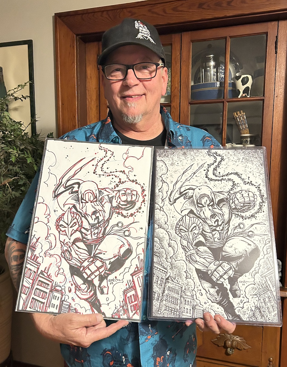 October 2025 Kevin with finished Iron Fist Cover art and rough Leave a Reply Cancel replyYou must be logged in to post a comment.