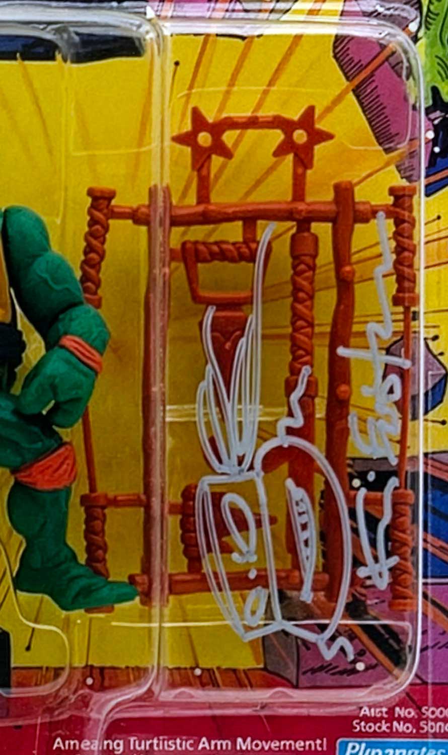 From the Personal Collection of Peter Laird and Kevin Eastman, creators of the Teenage Mutant Ninja Turtles, this vintage Michaelangelo also features a signature and Remarque by Kevin Eastman Hologram Label of Provenance on the backer card.