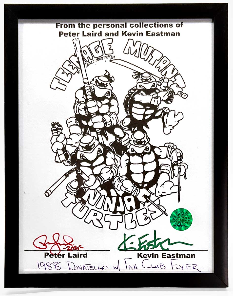 From the Personal Collection of Peter Laird and Kevin Eastman, creators of the Teenage Mutant Ninja Turtles. Accompanied by a Signed Certificate of Authenticity (COA) and Hologram Label of Provenance. The COA was signed by both Peter and Kevin in the Fall of 2025.