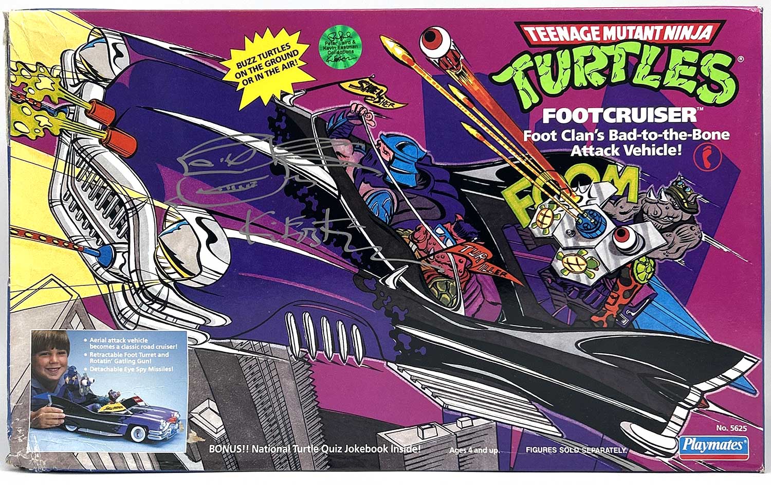 This 1989 Footcruiser was sent directly to Mirage Studios (Publishers of the Teenage Mutant Ninja Turtles) by Playmates and has been housed in the Personal Collections of Peter Laird and Kevin Eastman, the co-creators of the Teenage Mutant Ninja Turtles since then.