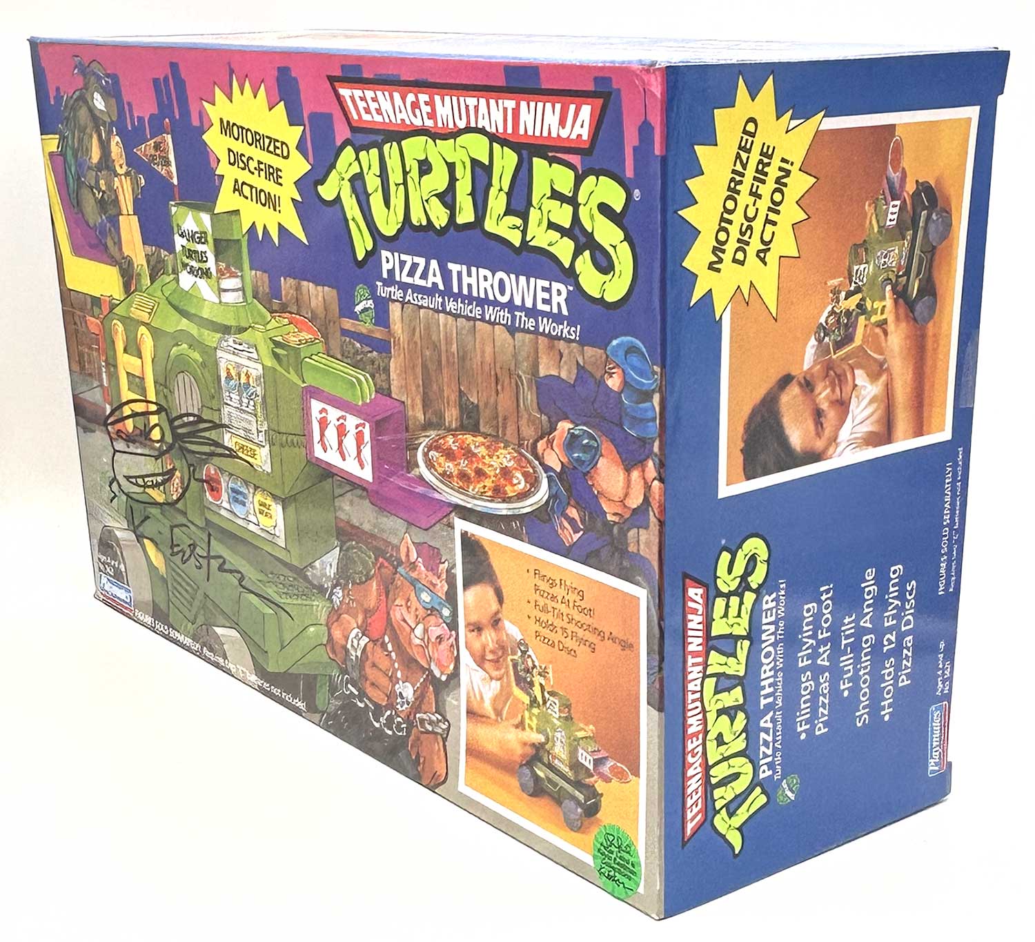 This 1989 Pizza Thrower was sent directly to Mirage Studios (Publishers of the Teenage Mutant Ninja Turtles) by Playmates and has been housed in the Personal Collections of Peter Laird and Kevin Eastman, the co-creators of the Teenage Mutant Ninja Turtles since then.