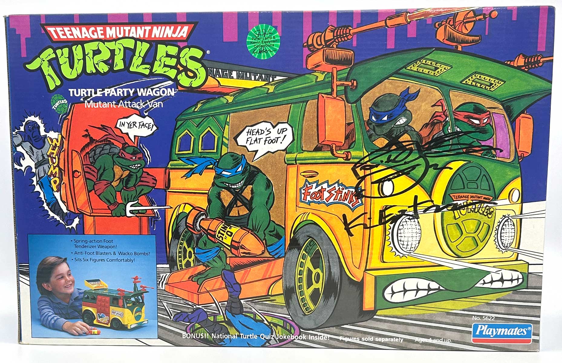 From the Personal Collection of Peter Laird and Kevin Eastman, creators of the Teenage Mutant Ninja Turtles, this vintage Turtle Party Wagon also features a signature and remarque  by Kevin Eastman and a Hologram Label of Provenance on the backer card.