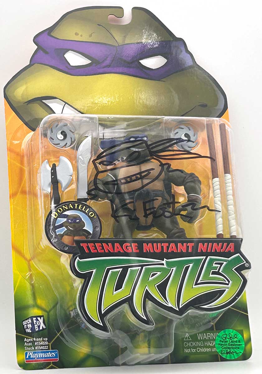 From the Personal Collection of Peter Laird and Kevin Eastman, creators of the Teenage Mutant Ninja Turtles, this vintage Donatello also features a signature and remarque by Kevin Eastman and a Hologram Label of Provenance on the backer card.