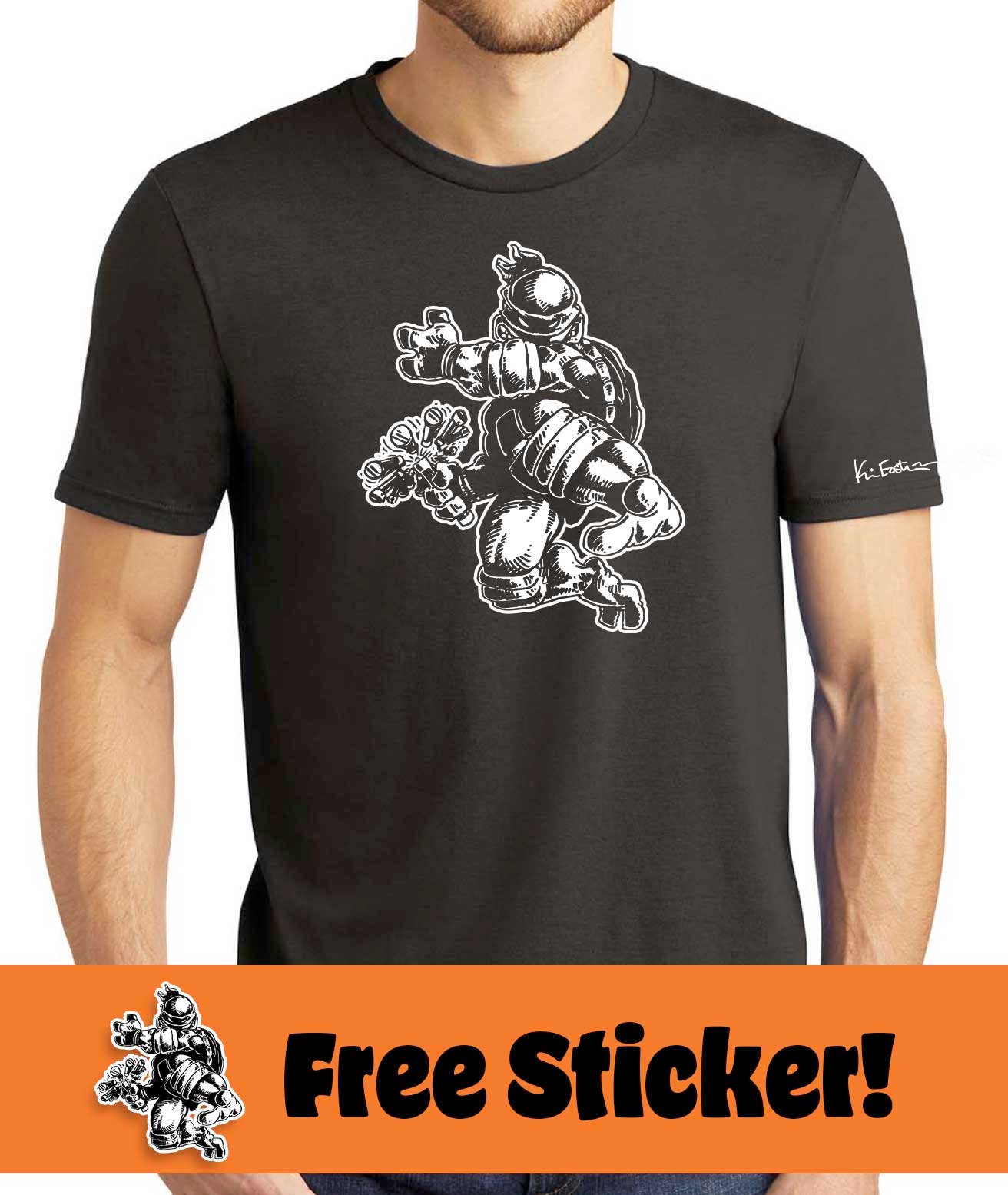 Enjoy this Kevin Eastman designed Classic, 1984 Michelangelo Tee with Kevin’s signature and remarque printed on the sleeve… AND we’re including a sticker of the same image too! – COWABUNGA!!!