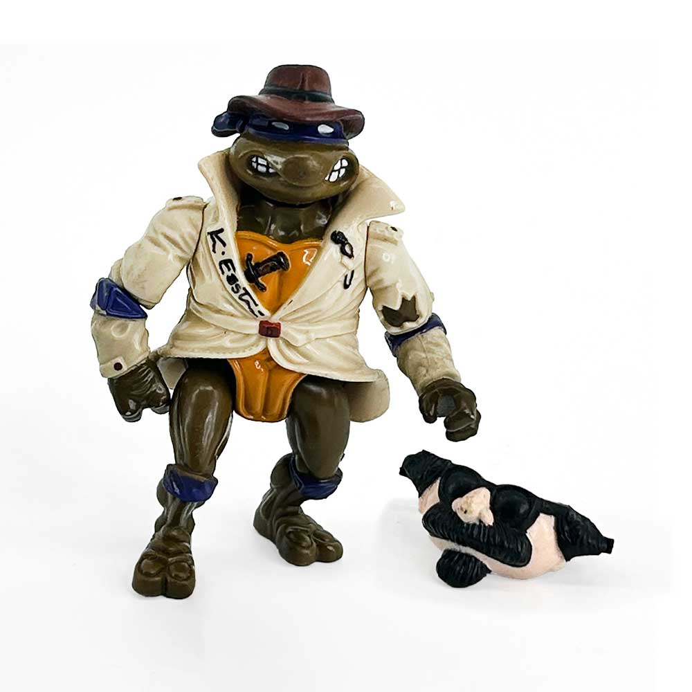He’s the sliest super-sleuth in the city. He’s Don, the Undercover Turtle and he likes his Retromutagen Ooze shaken, not stirred. Don fearlessly fights the Foot from the shadows of the night. Will he disappear into the night? No one knows, ’cause Don can slip away when he slips on his detective disguise and mingles with the meanies. He’s a cool covert crime fighter who dances with danger.