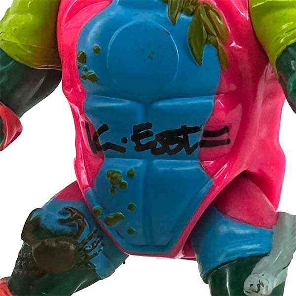 There’s a wild wave roarin’ in-and Mike’s ridin’ it all the way! He’s been workin’ hard to blast the Foot and now he’s ready to blast the beach-sewer surfer style. Armed to the teeth with Turtle treats, Mike’s the ultimate party warrior. He’s ditched the drips, joined up with his boogie boardin’ buddies and strayed for spray. Watch him snap open cans with The Crab, keep his balance with the sewer shark twins-all on his sewer-worthy surfboard. So slap on some shades and catch some rays’ cause this rowdy reptile’s ridin’ the waves. And remember-no Foot Clan drips are allowed.