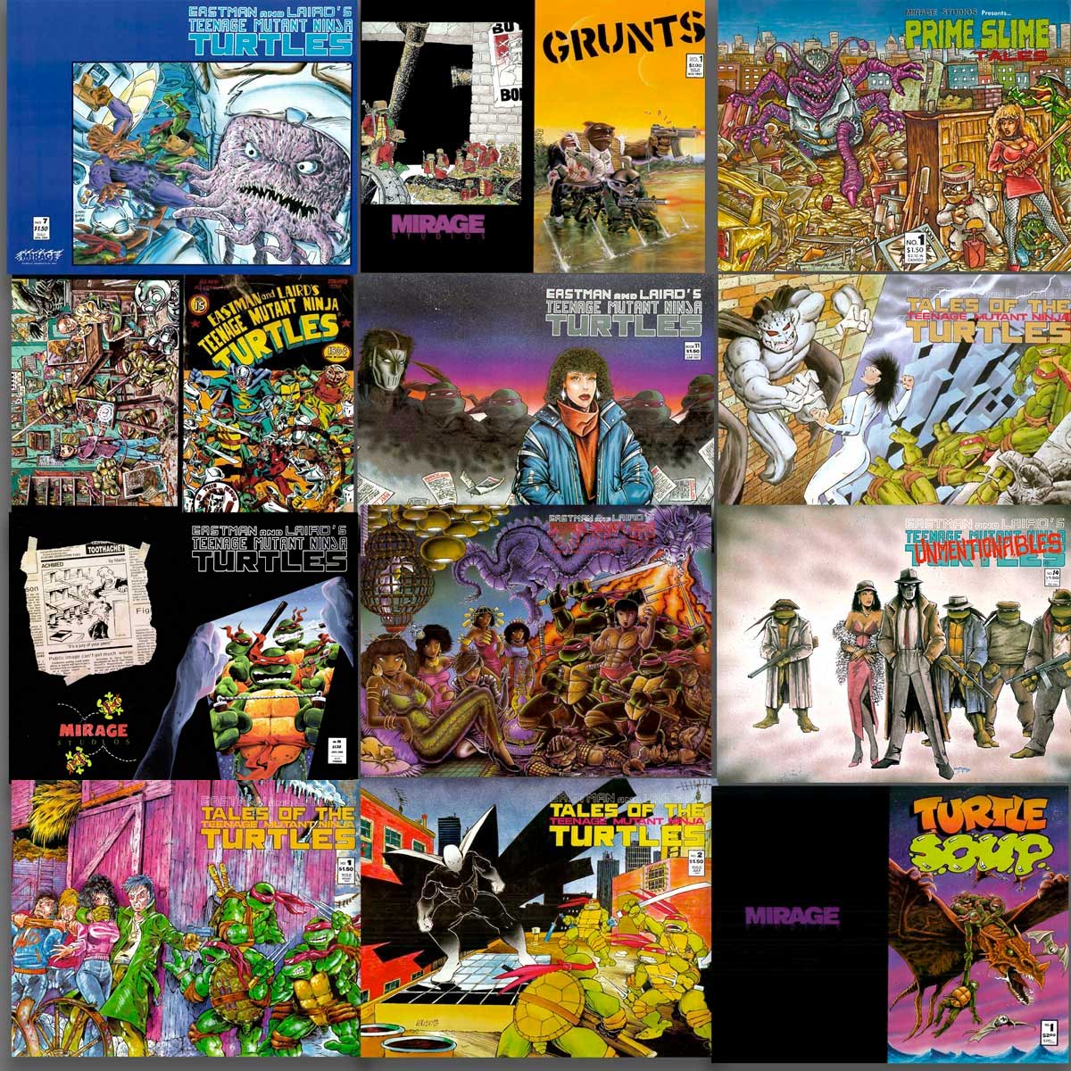This unique Cowabundle comprises 12 wraparound cover prints from 12 different Mirage Studios early 1980’s books.