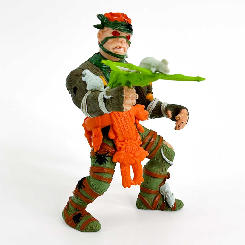 No one knows for certain where he came from, but one thing is for sure, Rat King revels in scum and scum revels in him. The creepiest of sewer crawlies nest in his royally rotten rags. The self-proclaimed King of the Ratocracy, he hypnotizes his rodent subjects with his seductive flute playing. Even Splinter succumbs to his magical musical powers. Rat King’s army protects his slimy kingdom by fighting tooth and whisker against all outsiders, good or bad. Rat King’s motto is: “First the sewers, then the world!” He and Shredder are battling for total sewer domination while the Turtles are defending their “Home Sweet Sewer” from both. Looks like plenty of trouble underfoot!