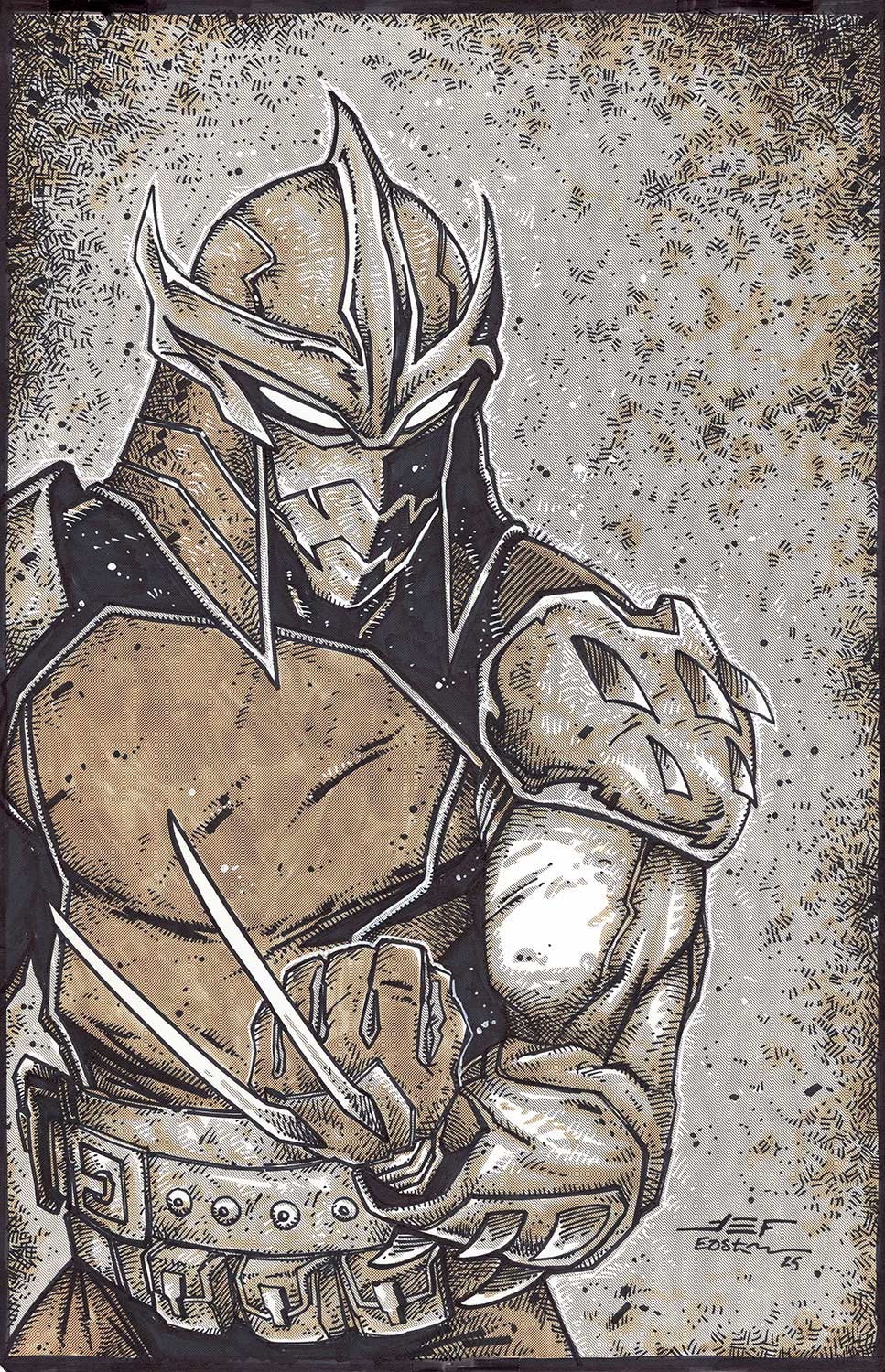 This dynamic 11″ x 17″ pen and ink artwork on Duo-Shade board is the Eastman cover art for Teenage Mutant Ninja Turtles Vol VI, Issue #12